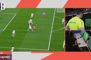 體育資訊02月09日訊 西甲第23輪迎來馬德里德比,皇馬主場對陣馬競。30分鐘,瓊阿梅尼禁區(qū)內解圍時踩到利諾。VAR介入,主裁判親自觀看回放后判罰點球。