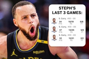在過去的三場比賽中,庫里皆得到30+,他成為NBA歷史上第二位在36歲還能連續(xù)三場30+的球員,第一位是喬丹。