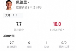 下一篇: 拉菲尼亞本場2射2正進(jìn)1球+1關(guān)鍵傳球 5過人2成功 7對抗3成功