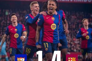 體育資訊02月10日訊 西甲第23輪,巴薩4-1大勝塞維利亞,取得聯(lián)賽3連勝,暫列西甲第3位,距離榜首皇馬僅2分。