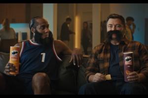 哈登參演了在超級碗間歇期的品客薯片廣告(30秒700萬美元),廣告的創(chuàng)意是大家的胡子都不翼而飛(切合品牌,舊譯“翹胡子薯片”),快船官推打趣道:“胡子周三(當?shù)貢r間,快船有比賽)前能回來嗎?”