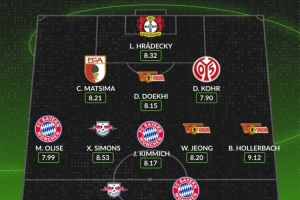 中場:奧利斯(拜仁)、西蒙斯(萊比錫)、基米希(拜仁)、鄭優(yōu)泳(柏林聯(lián)合)、霍勒巴赫(柏林聯(lián)合 )