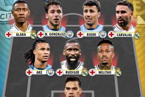 埃德森、阿克、呂迪格、米利唐、阿拉巴、卡瓦哈爾、羅德里、尼科-岡薩雷斯、巴斯克斯、多庫、鮑勃