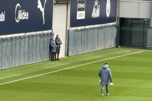 該記者曬出現(xiàn)場(chǎng)照并表示:“雨果-維亞納正在貝吉里斯坦的陪同下遠(yuǎn)觀曼城訓(xùn)練課?!?/p>