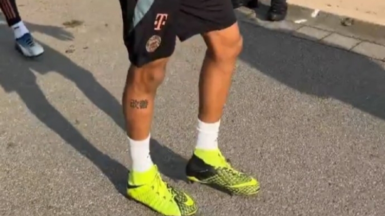體育資訊02月11日訊 拜仁邊鋒奧利塞在參加訓練的時候,被拍到他的小腿上文了一個中文詞:“改善”。