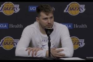 上演了湖人首秀的東契奇賽后來到湖人新聞發(fā)布會現(xiàn)場時脫口而出:“臥槽,這么多人???。∣h, shit. That’s a lot of people.)”