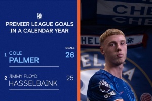 帕爾默今年為切爾西攻入26粒英超進球,超越哈塞爾巴因克,成為自然年英超進球最多的切爾西球員。切爾西官方社媒曬出數(shù)據(jù)海報,配文:“紀錄創(chuàng)造者。”