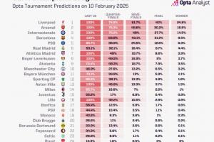 Opta大數(shù)據(jù)預(yù)測(cè)歐冠奪冠概率: