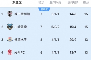 川崎前鋒、神戶勝利船剛剛在第7輪分別客場4-0浦項制鐵,主場4-0上海海港,雙雙取得大比分勝利,再加上4勝1平1負的橫濱水手,3支J聯(lián)賽球隊目前已經(jīng)包攬亞冠精英聯(lián)賽東亞區(qū)積分榜前三名。