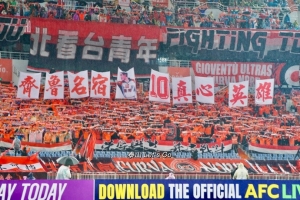 在今晚山東泰山主場(chǎng)對(duì)陣光州FC的比賽中,山東球迷打出標(biāo)語(yǔ)歡迎宿茂臻回歸:“齊魯名宿,真心英雄”。