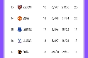 本賽季18輪過后,曼聯(lián)22分,落后榜首的利物浦(少賽一場)20分。