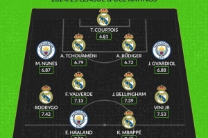 whoscored皇馬曼城本賽季聯(lián)賽+歐冠場均評分最佳陣:至少出場20次
