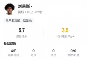 體育資訊2月12日訊 歐冠淘汰賽附加賽首回合,曼城主場2-3遭皇馬絕殺。此役劉易斯替補(bǔ)登場45分鐘補(bǔ)時送禮,球員全場重點數(shù)據(jù)如下↓