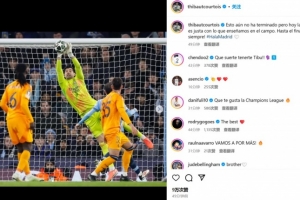 庫爾圖瓦曬出自己進(jìn)行撲救的比賽照,并配文:“比賽還沒有結(jié)束,但考慮到我們的場(chǎng)上表現(xiàn),今天的勝利當(dāng)之無愧。一如既往,戰(zhàn)斗到最后一刻!馬德里前進(jìn)??”