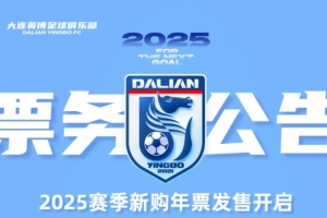 體育資訊2月12日訊 根據(jù)大連英博俱樂部官方的消息,大連英博新賽季新購年票將于2月14日13:14正式開啟發(fā)售 ??。