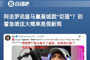 ??阿圭羅賽后梅開(kāi)二度,曼城最終4-3逆轉(zhuǎn)皇馬!(當(dāng)然了,這是假新聞,吧友們可別信哦~)