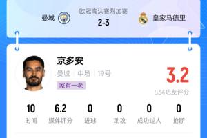歐冠淘汰賽附加賽首回合,曼城主場2-3遭到皇馬逆轉(zhuǎn)。在比賽第84分鐘仍2-1領(lǐng)先的情況下,瓜迪奧拉選擇用京多安換下德布勞內(nèi),隨后曼城在10分鐘的時間內(nèi)連丟兩球,瓜帥的這個換人是否是這場比賽的勝負手?