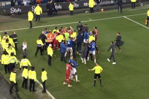 體育資訊02月13日訊 利物浦2-2遭埃弗頓絕平,完場哨響,兩隊在古迪遜公園立刻爆發(fā)了沖突!球迷也沖進(jìn)來了!