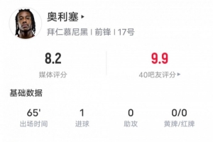 體育資訊2月13日訊 歐冠淘汰賽附加賽,拜仁客場2-1戰(zhàn)勝凱爾特人。本場比賽,奧利塞首發(fā)出戰(zhàn),貢獻(xiàn)1粒進(jìn)球,送出2次關(guān)鍵傳球,評分8.2全場最高。