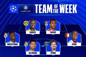 體育資訊2月14日訊 歐冠官方公布本周最佳陣,維尼修斯、貝林厄姆、于帕梅卡諾、多納魯馬等球員入選。