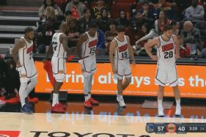 烏度卡想要一口氣換5人,但是杰倫-格林要罰球,所以晚了一個(gè)回合才被謝潑德?lián)Q下