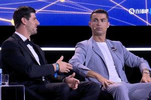 體育資訊12月27日訊 環(huán)足獎(jiǎng)?lì)C獎(jiǎng)典禮正在進(jìn)行中,C羅與庫(kù)爾圖瓦一起接受了采訪。