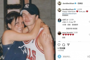 貝克漢姆社媒曬出與妻子維多利亞昔日的合照,配文:“情人節(jié)快樂??愛你??維多利亞。”