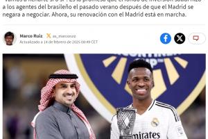 體育資訊02月14日訊 維尼修斯與沙特聯(lián)賽的轉會傳聞愈演愈烈,《阿斯》透露了新的消息。