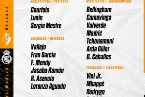 體育資訊2月15日訊 在本輪西甲聯(lián)賽的一場比賽中,皇馬將赴客場對陣奧薩蘇納,賽前,皇馬公布了本場比賽的球員大名單,如下:
