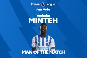 此役出任邊衛(wèi)的明特為布萊頓打進(jìn)2球,英超官方宣布,他當(dāng)選本場(chǎng)比賽最佳球員。