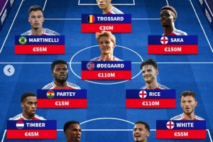 前鋒:馬丁內(nèi)利(5500萬(wàn))、特羅薩德(3000萬(wàn))、薩卡(1.5億)