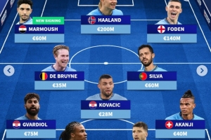 前鋒:馬爾穆什(6000萬)、哈蘭德(2億)、福登(1.4億)