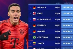 體育資訊12月28日訊 《轉(zhuǎn)會(huì)市場》統(tǒng)計(jì)了拜仁歷史身價(jià)情況,穆西亞拉以1.4億歐創(chuàng)紀(jì)錄。