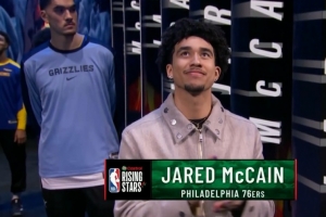 體育資訊2月15日訊 NBA全明星新秀賽正在進(jìn)行中,76人首輪16號(hào)秀麥凱恩也現(xiàn)身觀戰(zhàn)。
