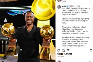 體育資訊12月28日訊?官方消息,維尼修斯當選2024年環(huán)球足球獎年度最佳男足球員。