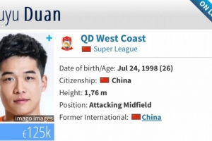 體育資訊2月15日訊 德轉(zhuǎn)市場今日更新了段劉愚的轉(zhuǎn)會信息,網(wǎng)站顯示球員即將以租借方式再度效力青島西海岸,租借期至今年12月31日。