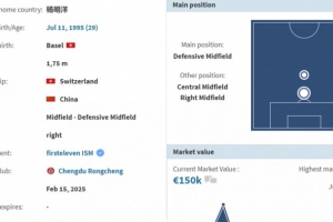 楊明洋,1995年7月11日出生于瑞士巴塞爾,2021年回歸中國(guó)籍,司職防守型中場(chǎng)。2024賽季,楊明洋代表南通支云出戰(zhàn)24場(chǎng),貢獻(xiàn)了2次助攻。