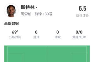 體育資訊02月15日訊 英超第25輪,阿森納客場對陣萊斯特城。斯特林本場比賽首發(fā),在第69分鐘被換下場。本場比賽斯特林?jǐn)?shù)據(jù)慘淡,有8項(xiàng)數(shù)據(jù)掛0↓