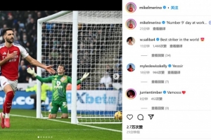 梅里諾首次客串中鋒便打進(jìn)2球,他也通過社媒曬出自己進(jìn)球后的慶祝照,并配文:“9號位上班日… ????????”