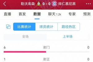 體育資訊2月16日訊 勒沃庫森在本輪德甲上半場0-0戰(zhàn)平拜仁,兩隊(duì)關(guān)鍵數(shù)據(jù)如下: