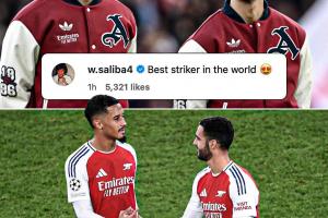 中衛(wèi)薩利巴在評論區(qū)猛吹隊友梅里諾:“世界最佳射手??”。