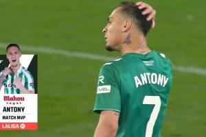 體育資訊02月17日訊 西甲第24輪,貝蒂斯3-0皇家社會,賽后,安東尼當(dāng)選全場最佳。加盟貝蒂斯后3場他西甲全部當(dāng)選MVP。