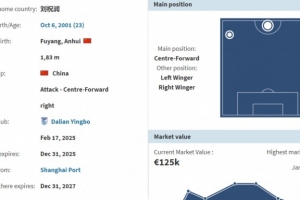 體育資訊2月17日訊 《轉(zhuǎn)會市場》顯示,海港前鋒劉祝潤租借加盟大連英博,租借期為一年。