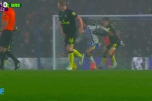佩德羅在一次反擊中被對手亞莫柳克拉住,導(dǎo)致進攻受阻,隨后他惱火地做出肘擊動作,但沒有擊中對手,他也沒有因此得到處罰。