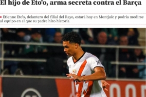 體育資訊2月17日訊 《世界體育報》報道,埃托奧的兒子埃蒂安-埃托奧今晚將進入巴列卡諾一線隊名單,可能出戰(zhàn)巴薩。