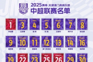 天津津門虎隊(duì)2025賽季中超聯(lián)賽參賽球員名單
