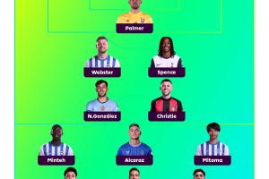 中場(chǎng):岡薩雷斯(曼城)、克里斯蒂(伯恩茅斯)、明泰(布萊頓)、阿爾卡拉斯(埃弗頓)、三笘薰(布萊頓)