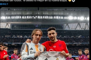 莫德里奇寫道:祝賀你那波瀾壯闊的職業(yè)生涯,你的塞維利亞和西班牙永遠不會忘記你所做的,你給足球世界帶去了快樂,我為你在人生的新階段送出最好的祝福。