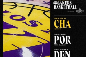 體育資訊2月18日訊 經(jīng)歷了全明星間歇期的6天調(diào)整(湖人上場比賽還是2月13日對爵士),湖人將迎來一波4天3戰(zhàn)的賽程。