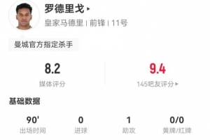 體育資訊2月20日訊 皇馬在歐冠附加賽次回合3-1擊敗曼城,羅德里戈本場數(shù)據(jù)如下: